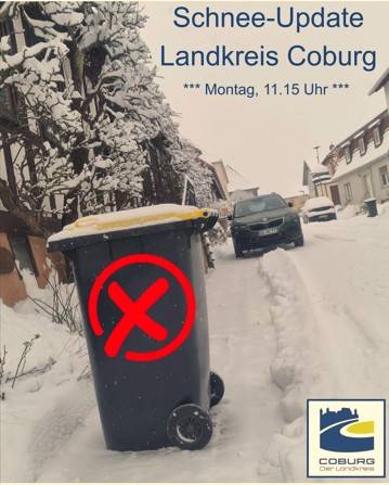Aufgrund der Witterungsverhältnisse kann es auch heute noch zu Verzögerungen bei Leerung / Abholung der Mülltonnen kommen.