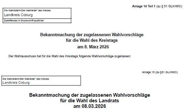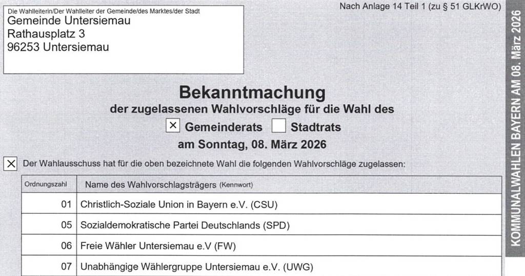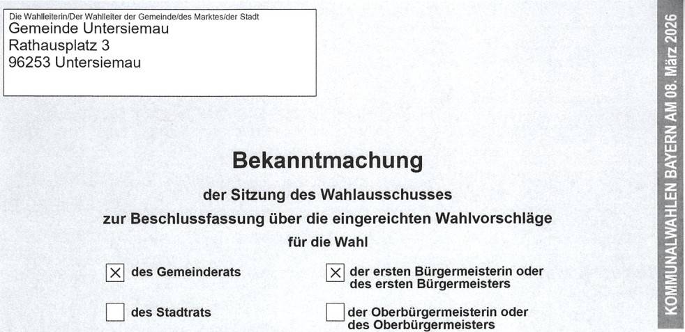 Es gibt weitere Bekanntmachungen bzgl. der Kommunalwahl am 08.03.2026
