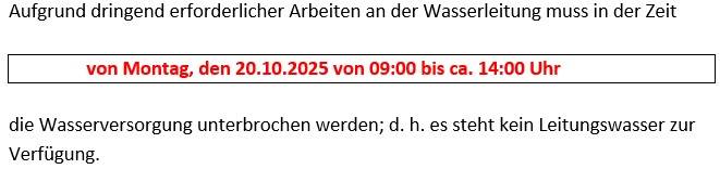 Die Wasserversorgung ist in dieser Zeit unterbrochen.